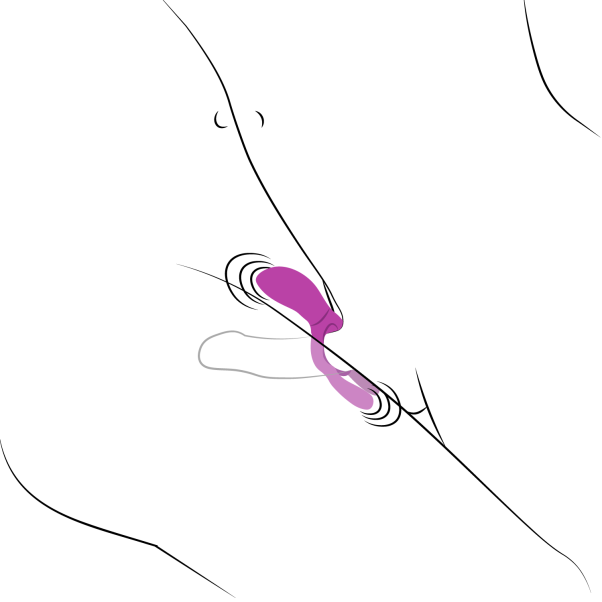 Faites glisser l'anneau interne et extensible le long du pénis et appréciez l'ajustement serré de l'anneau externe qui est plus ferme à votre base. La surface striée du stimulateur frotte contre le clitoris tandis que les pattes inférieures s'inclinent vers l'arrière pour s'appuyer sur vos testicules. Portez l'anneau comme ça, ou retournez-le pour intervertir les parties plaisantes.
