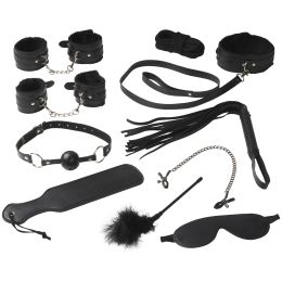 CONTENU : Martinet, menottes, menottes pour chevilles, collier, bâillon, bandeau, paddle, laisse, corde de bondage, pinces à tétons, plumeau.