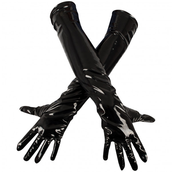 De longs gants à effet laqué qui atteignent le milieu du haut des bras.