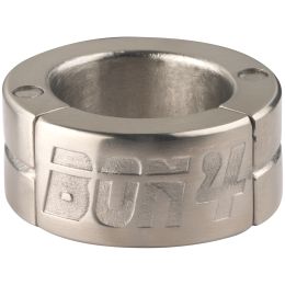 Idéal pour ceux et celles ayant déjà de l'expérience dans ce domaine, l'étireur a une surface lisse à l'intérieur, tandis que la surface extérieure est orné de gravures et du nom de la marque. Faites glisser vos testicules à l'intérieur de l'ouverture ovale et attachez les deux pièces de l'anneau ensemble. Cet anneau lourd tirera gentiment vos testicules vers le bras, et la gravité sera aussi d'une grande aide.