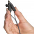 La pince dispose d'une vis de réglage qui permet de limiter la force de préhension, idéale lorsque vous souhaitez la connecter à vos embouts plus délicats. La pince simple est attachée à un câble de 1,45 mètre avec une prise Jack de 3,5 mm, qui se connecte à tous les boîtiers de commande E-Stim.