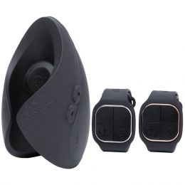 Les deux télécommandes incluses servent à contrôler les deux moteurs simultanément ou séparément. La rose et dorée contrôle le moteur externe ; l’argentée le moteur interne. Les deux peuvent être portées au poignet comme une montre.