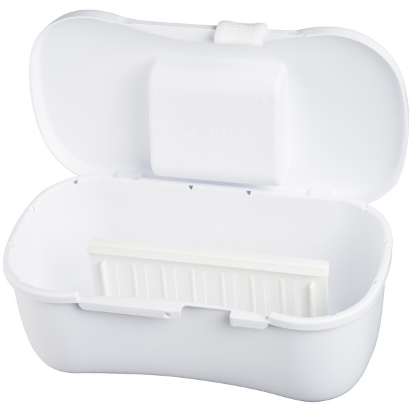 Protégez votre passion et votre plaisir avec ce Système de Stockage Hygiénique de Joyboxx. Cette spacieuse boîte en plastique blanche est recyclable.