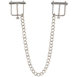 Les pinces en acier solide sont reliées à une chaîne qui, lorsqu'elle est tirée, procure une sensation supplémentaire de tiraillement et de traction à vos tétons sensibles.