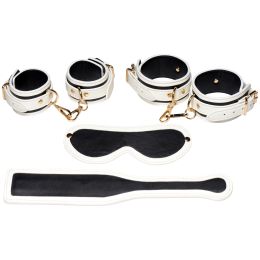 INCLUS : Menottes poignets, menottes chevilles, bandeau, paddle.