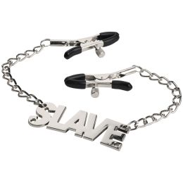 L'incontournable "SLAVE" écrit en gros caractères ajoute une touche de perversité. Et si la personne qui les portent ose l'oublier, une légère traction sur les pinces la remettra rapidement dans le droit chemin !