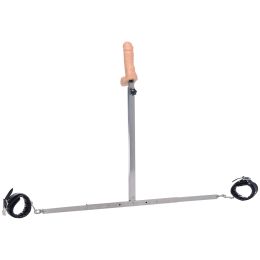 Maintenant, présentez la barre d'écartement. Fixez un gode (non inclus) à l'adaptateur pour gode et voyez combien de temps votre partenaire peut tenir sa position avant de s'abaisser sur le bâton stimulant.