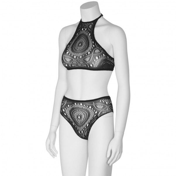 L’attache du haut dos nu dans le cou vous permet de décider de l’ajustement parfait. Enfin, dévoilez l'entrejambe ouvert de la culotte, pour ne même pas avoir à vous déshabiller quand vous voulez sentir une douce caresse !