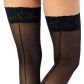 Glissez vos jambes dans ces bas souples et appréciez leur haut épais et élastique qui les feront rester en place - avec ou sans bretelles. La dentelle florale de l'ourlet ne demande qu'à être touchée, alors dites à votre partenaire de partir à la découverte de la beauté qui se trouve entre vos jambes.