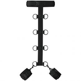 Le harnais comporte un tour de cou réglable avec une sangle qui se rattache au bas où vous pouvez attacher les poignets sur 4 niveaux différents via deux anneaux, un de chaque côté de la sangle. Les possibilités de jeux coquins sont infinies, car vous pouvez fixer les bras à l'avant et à l'arrière.