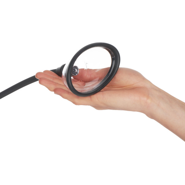 Faites glisser un peu de lubrifiant à base d'eau le long du bord de la coupelle avant de la laisser engloutir votre vulve dans un baiser à bouche ouverte. Utilisez la pompe pour aspirer progressivement l'air et augmenter le flux sanguin dans vos lèvres et votre clitoris.