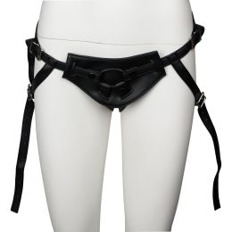 Embarquez pour une aventure palpitante avec ce harnais en similicuir d'obaie. Ce harnais polyvalent est conçu pour s'adapter à toute une gamme de tailles de godes, grâce aux trois anneaux de diamètres différents inclus.