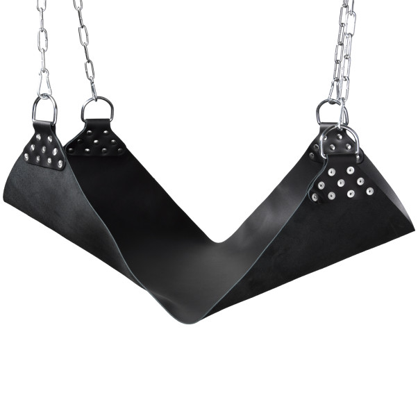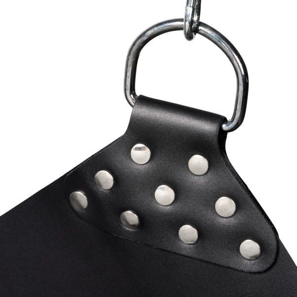 L'assise est composée d'un cuir solide d’1 anneau métallique à chaque coin. Les anneaux sont destinés à fixer les chaînes. Vous pourrez ensuite fixer fermement la balançoire au plafond. Vous pouvez décider de raccourcir les chaînes à une extrémité, pour que la personne dans la balançoire soit assise bien droite, au lieu de suspendre quatre chaînes avec les mêmes longueurs.