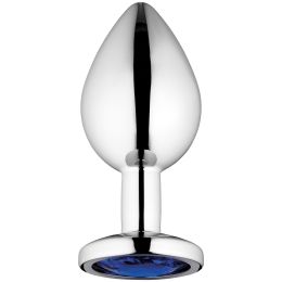 Laissez votre fessier scintiller de plaisir grâce à ce plug anal Blue Jewel de Sinful. Appréciez la taille intermédiaire gratifiante de ce plug en métal lisse et la base brillante qui viendra décorer votre anus.