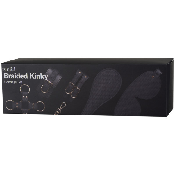Transformez votre chambre à coucher en un club intime et kinky avec cet ensemble de bondage tressé de Sinful. Avec des menottes pour retenir les poignets et les chevilles, un hogtie, un bandeau et un paddle, vous avez tout ce qu'il vous faut pour vous amuser avec le BDSM et donner la chair de poule.