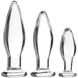 Il est composé de trois plugs anaux de différentes tailles, afin que vous puissiez progressivement vous habituer à une stimulation plus complète. Il sont en verre borosilicate dans un style élégant et a une apparence à la fois robuste et délicate.