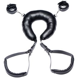 COMPREND : Menottes, 6 anneaux en D attachés, harnais de cuisses, repose-cou.