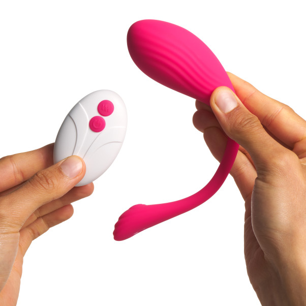 Plongez vers le plaisir avec cet œuf vibrant télécommandé de Tracy's Dog. Les nervures stimulantes et l'œuf bulbeux ciblent votre point G tandis que l'autre bout stimule votre clitoris avec des vibrations télécommandées.