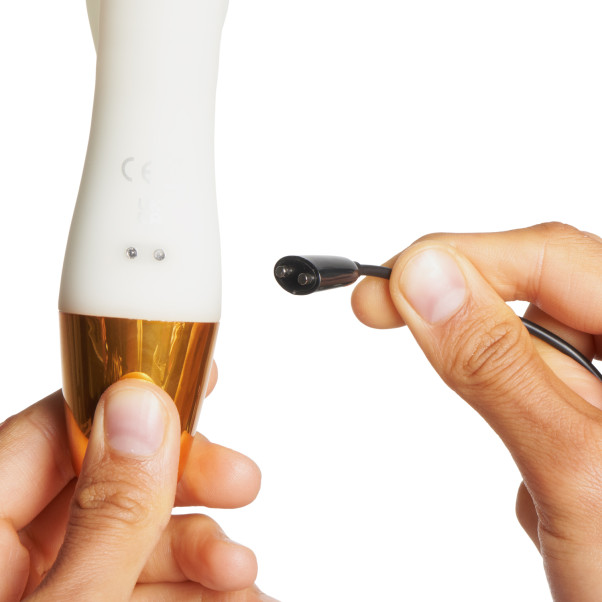 Utilisez un lubrifiant à base d'eau sur la tige incurvée pour une glisse en douceur dans les profondeurs qui vous attendent. Profitez des vibrations grondantes et des picots stimulants qui caressent votre point G pendant que les oreilles de lapin taquinent et chatouillent votre clitoris.